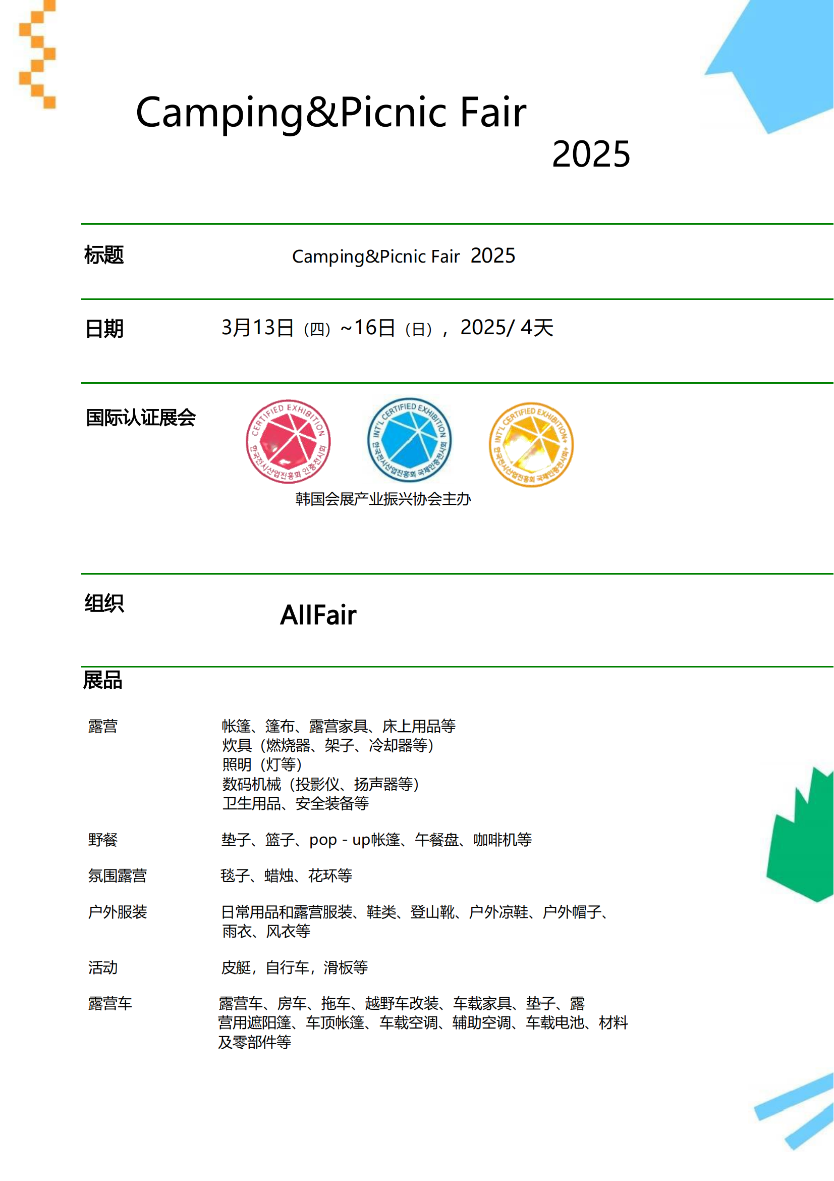 2025韓國露營及野餐展