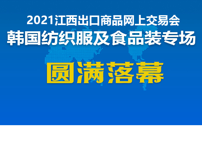 由江西省口岸貿(mào)易促進中心主辦,青島啟盛龍國際會展服務(wù)有限公司承辦的“江西出口商品網(wǎng)上交易會(韓國站紡織服裝及食品專場)”...
